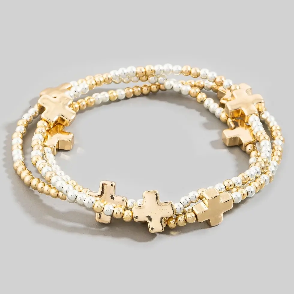 Mini Cross Charms and Metallic Beads Bracelet Set